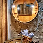 Köksfaciliteterna i villan Manoir Au Coeur Des Vignes Pensionat inkluderar vattenkokare, kylskåp och köksredskap, som finns i matplats.